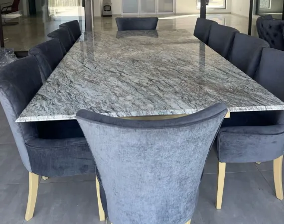 Make a statement with a one-of-a-kind dining table crafted from a single, stunning slab of natural granite.