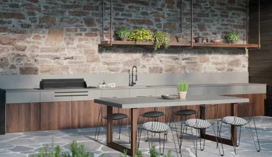 Capturing the warmth of natural light, this sandy-white stone brings a relaxed, spa-like atmosphere to your outdoor kitchen. It’s a durable, weather-ready surface that blends seamlessly with nature while providing a sterile, easy-to-clean workspace.